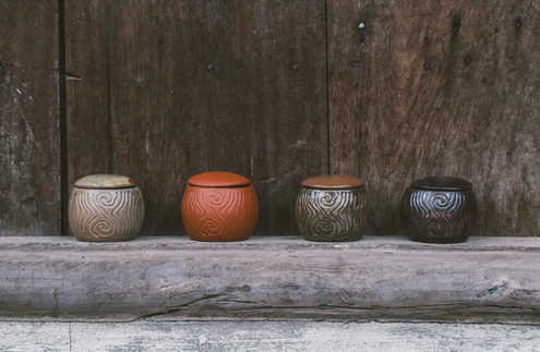 Đất sét được tuyển từ những cánh đồng Bắc Giang, chở về Bắc Ninh bằng thuyền, lọc và vò tay để loại sạn nhỏ. Với kỹ thuật làm gốm truyền thống của làng cổ Phù Lãng, chúng được chuốt, khắc hoạ tiết Scent Heritage, lau men để tạo màu sắc tự nhiên độc bản, nung lò củi… hoàn toàn thủ công. Màu men tro - được làm từ tro của các loại củi rừng, gỗ, rơm, rạ, trấu, cỏ... cũng là một nét đặc sắc riêng. Với hũ nến Bưởi của bộ sưu tập lần này, chúng tôi chọn màu men đỏ rực như gạch.